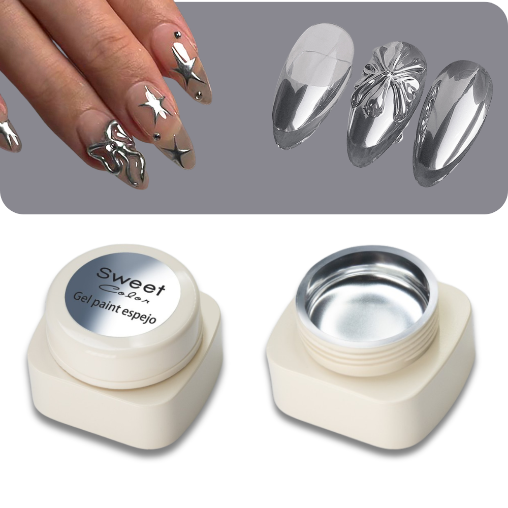 Gel Paint Metalizado Plateado super brillante efecto espejo