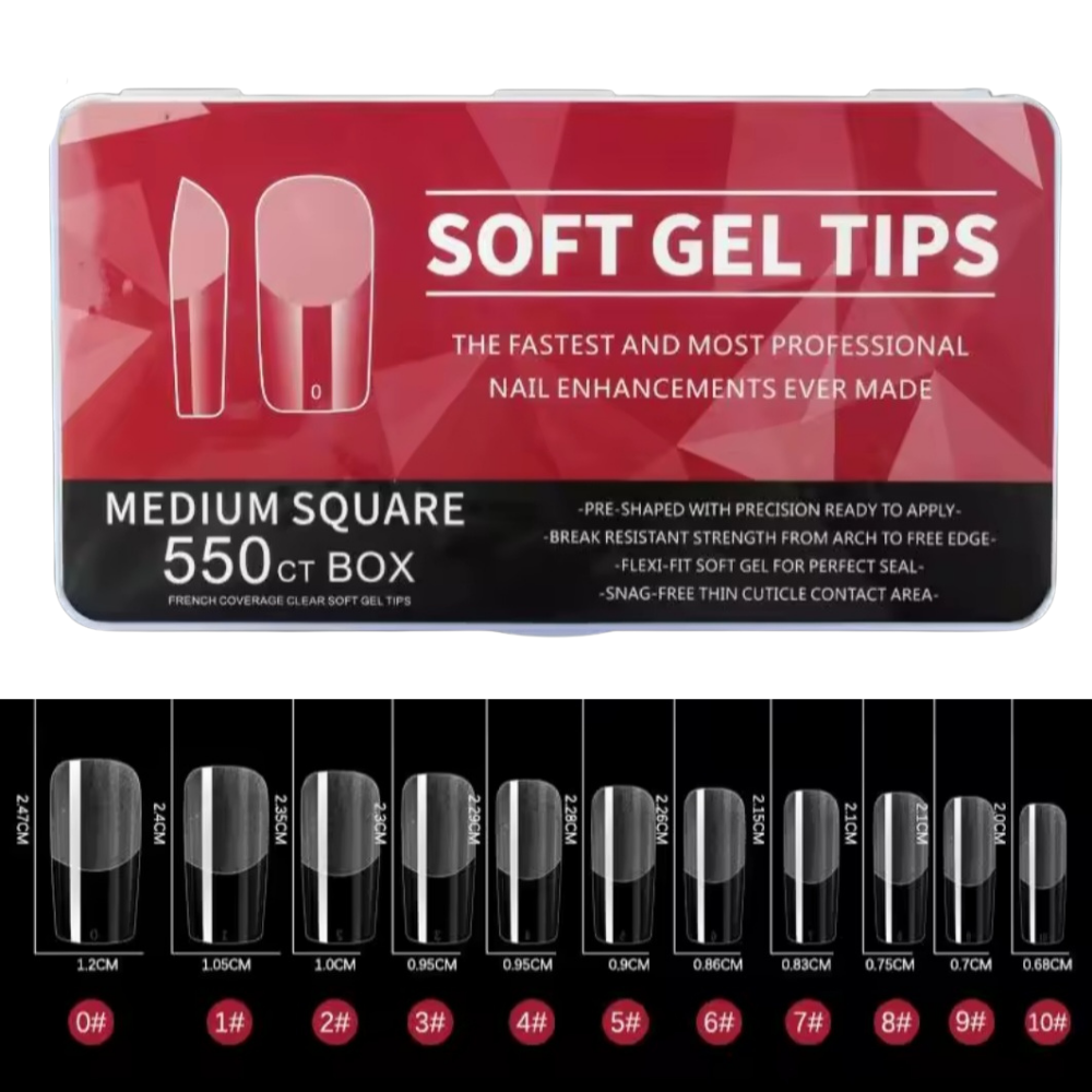 Tips Soft Gel Pre-limados Medium Square 550und